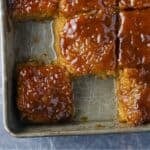 A pan of Biko sliced cut into squares in the pan.